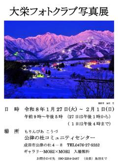 公開日:2025年12月27日教育・学習大栄フォトクラブ【写真】大栄フォトクラブ写真展2026開催日:2026年01月27日(火)~02月01日(日)