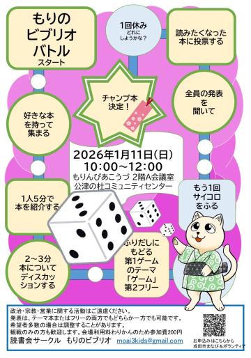 | 主催 | もりのビブリオ |